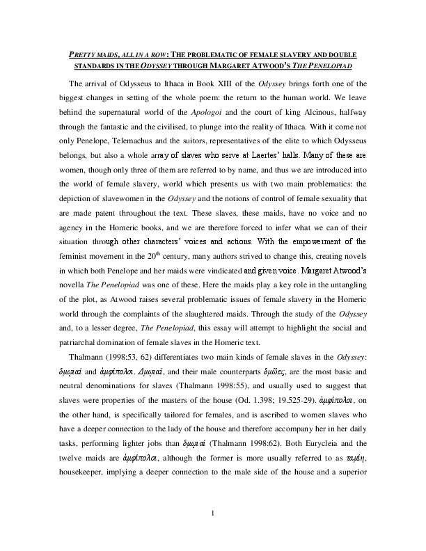 Pdf Pretty Maids All In A Row The Problematic Of Female Slavery And Double Standards In The Odyssey Through Margaret Atwood S The Penelopiad Cristina Mestre Gonzalez Academia Edu